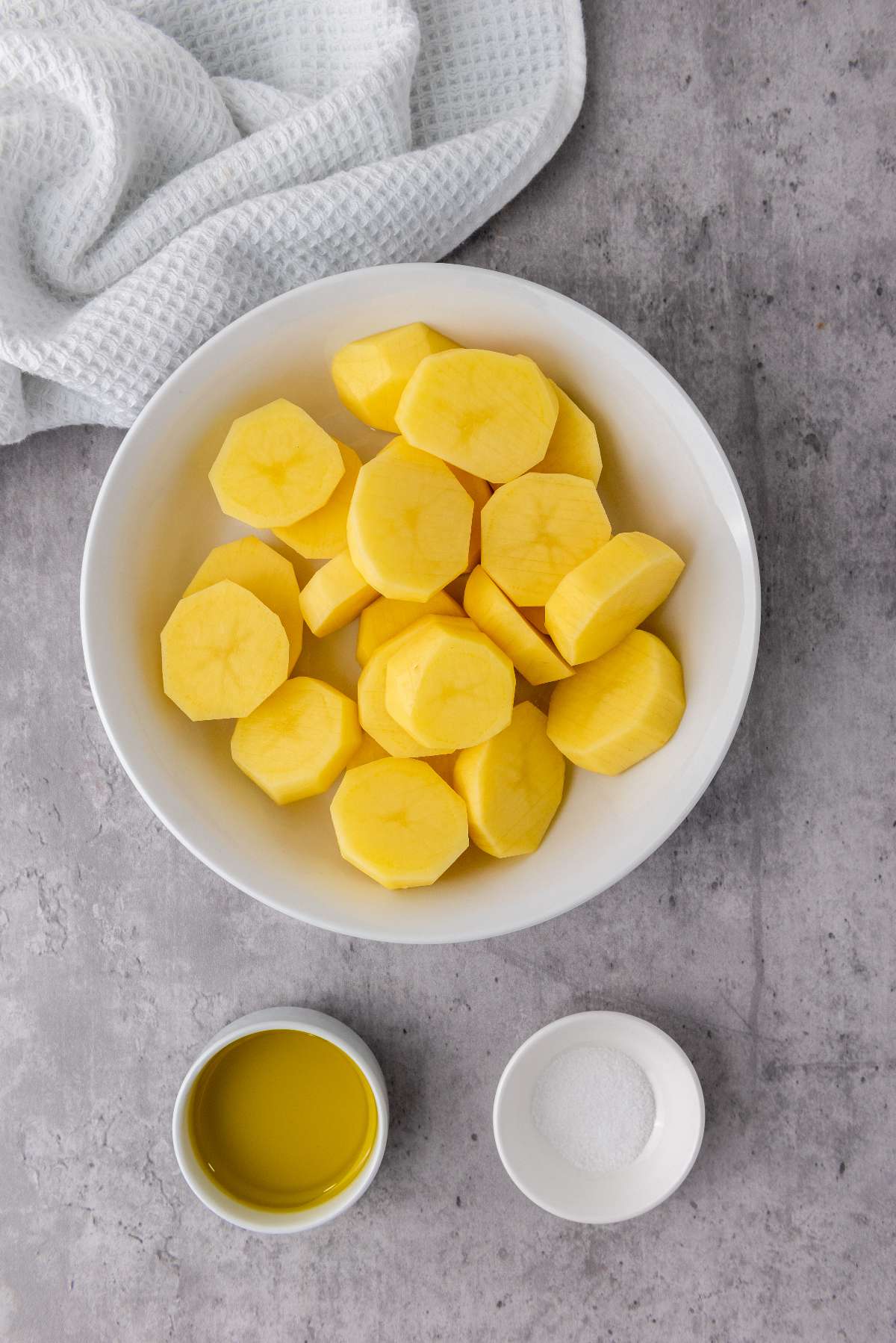 Cover the potatoes with your olive oil and season with salt. You can also add other favorite seasonings as well.