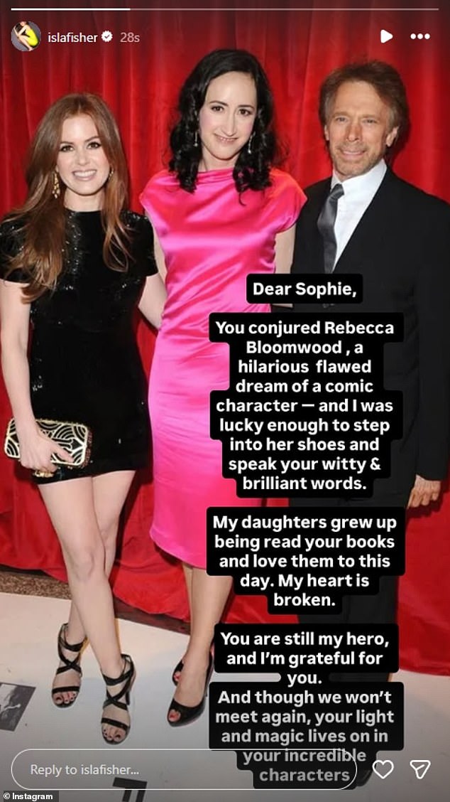 Writers and actors alike have been paying tribute to the author today, with Isla Fisher writing on Instagram: ‘You conjured Rebecca Bloomwood, a hilarious, flawed dream of a comic character – and I was lucky enough to step into her shoes and speak your witty and brilliant words.