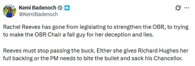Tensions have also been raging over the OBR revealing explosive details of when it told Ms Reeves there was no hole in the public finances.
